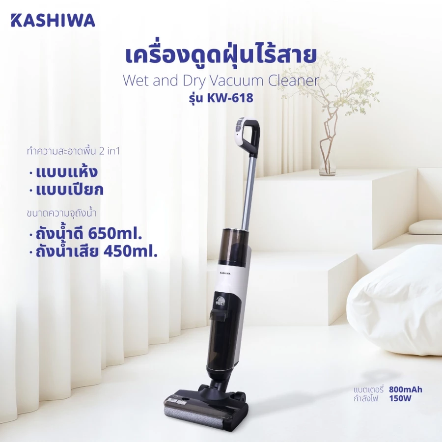 KASHIWA เป็นหนึ่งในแบรนด์เครื่องใช้ไฟฟ้าภายในบ้าน และ KASHIWA เครื่องดูดฝุ่น รุ่น KW-618 เป็นอุปกรณ์ที่ออกแบบมาเพื่อดูดฝุ่นและถูพื้นได้ในเครื่องเดียว