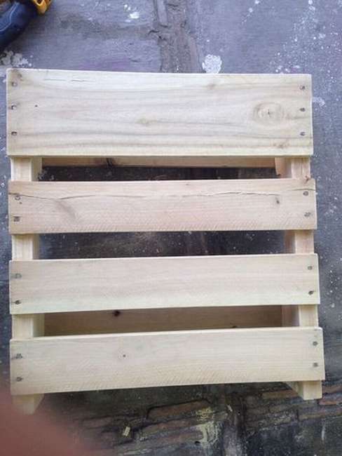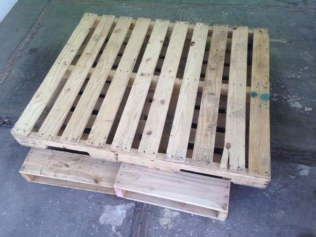 เลือกพาเลทหนึ่งชิ้นเป็นฐานของโต๊ะ จากนั้นปรับให้ด้านบนเป็น พื้นผิวเรียบ ไม่มีช่องว่าง ระหว่างไม้
