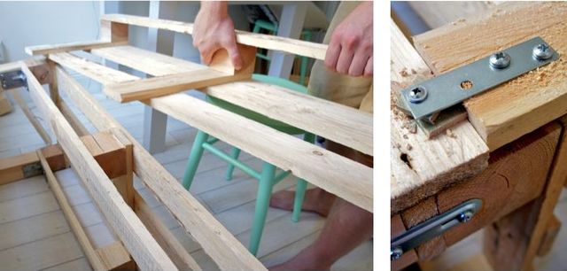 ถ้าต้องการม้านั่งยาวเป็นพิเศษ ให้เตรียมโครงสร้างชิ้นใหญ่เพิ่มและต่อเข้าด้วยกัน