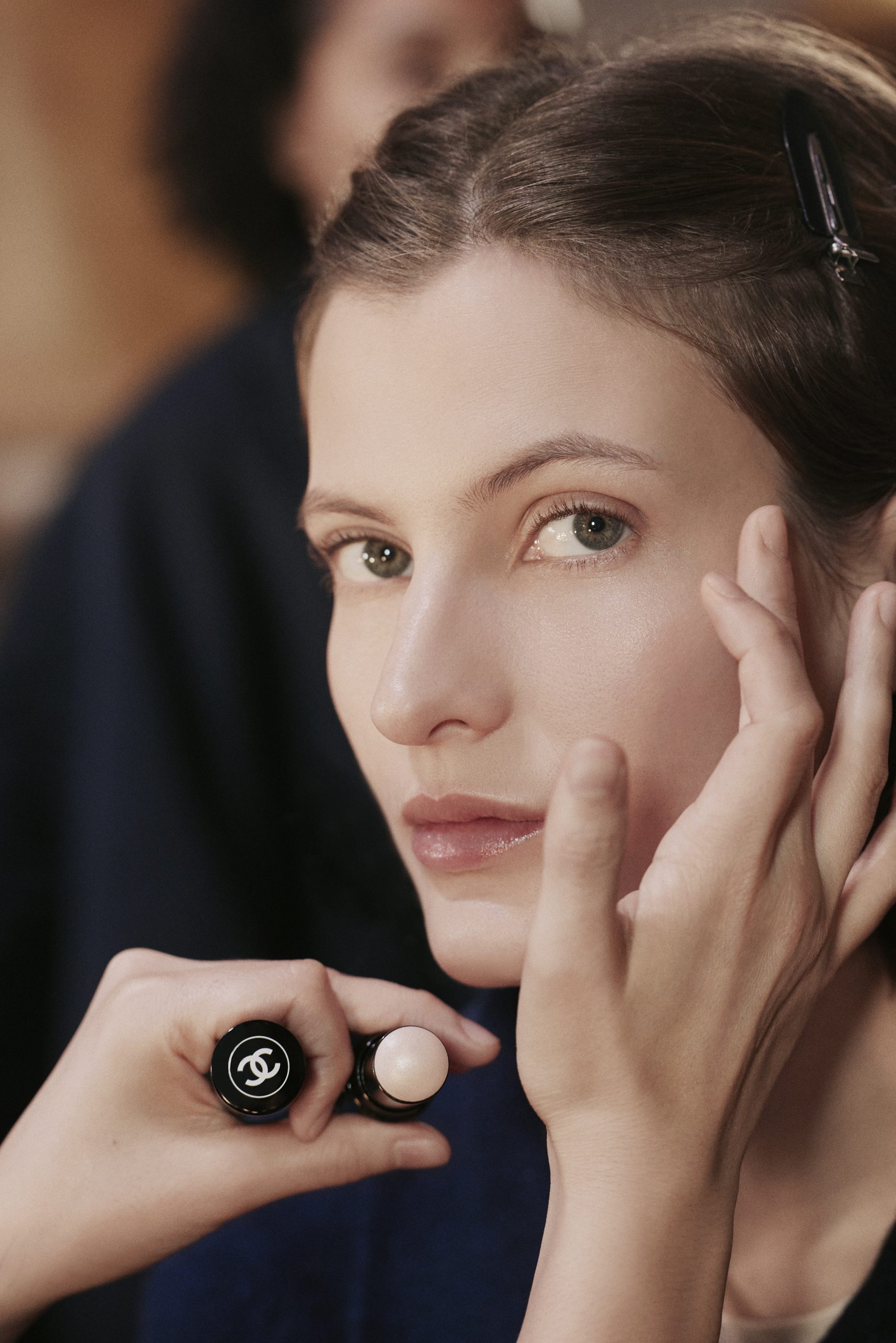 รูทีนหลังเวทีเริ่มด้วยการบำรุงด้วย SUBLIMAGE LA CRÈME TEXTURE UNIVERSELLE เพื่อเติมความชุ่มชื้นและทำให้ผิวดูฟูเนียน จากนั้นล็อกความชุ่มชื้นด้วย SUBLIMAGE Le Baume ให้ผิวดูนุ่ม ละมุน และสมดุล ก่อนเข้าสู่ขั้นตอนเมกอัพ