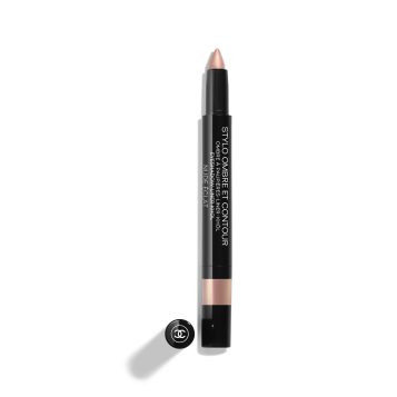 เปลือกตาทาไลต์บางเบาด้วย STYLO OMBRE ET CONTOUR โทน NUDE ÉCLAT ให้สีที่นุ่ม ละเอียด และช่วยเพิ่มความสว่างแบบเนียนๆ โดยปล่อยให้เส้นอายไลเนอร์ยังเป็นพระเอกของลุค