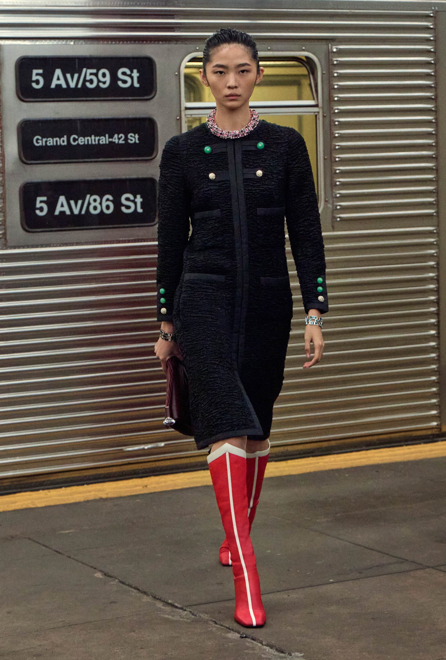 โชว์ครั้งนี้จัดขึ้นที่สถานีรถไฟใต้ดินร้าง Bowery ใจกลาง นิวยอร์ก โลเคชั่นดิบ เท่ และเต็มไปด้วยคาแรกเตอร์ ทำให้ภาพของนางแบบบนรันเวย์มีเสน่ห์แบบเมืองใหญ่ชัดเจน ทั้งความเคลื่อนไหว ความจริง และพลังของเมืองที่ไม่เคยหยุดนิ่ง