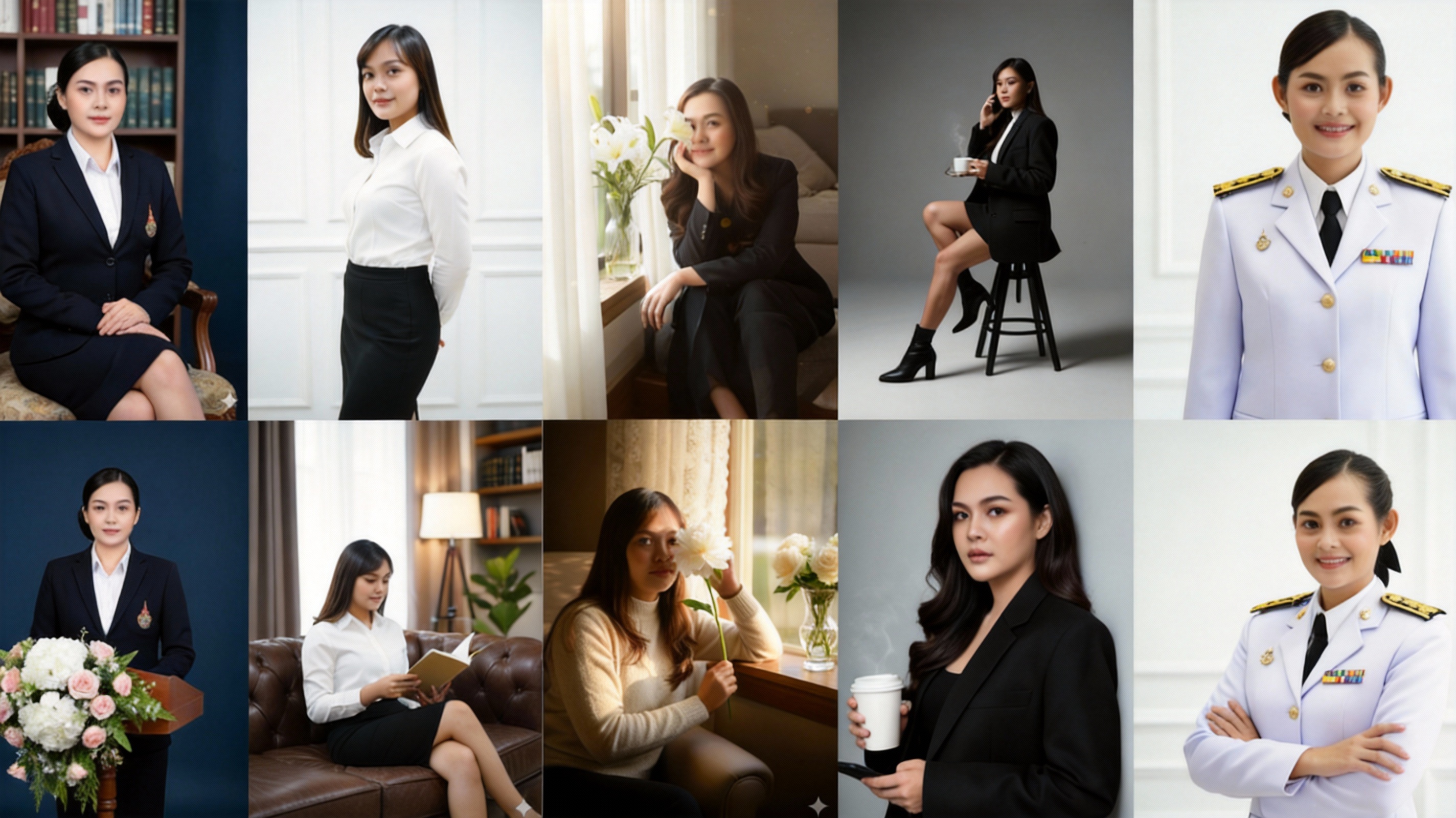 Note: ถ้าภาพต้นฉบับใส่ชุดคนละแบบ ให้ใช้ Prompt กำหนดชุดใหม่ให้ชัดเจนตั้งแต่ต้น