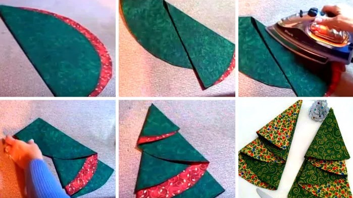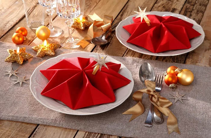 สำหรับช่วงเทศกาล ผ้าเช็ดปากพับเป็นต้นคริสต์มาสบนจานคือไอเดียที่ทั้งเด็กและผู้ใหญ่ชอบ โดยเฉพาะถ้าใช้สีเขียว