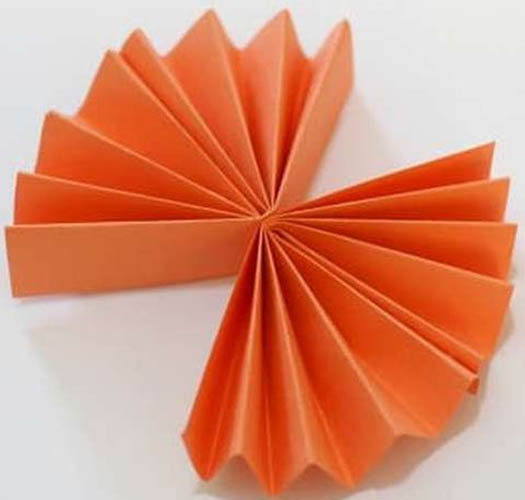 ใช้ด้านสั้นพับแบบหีบเพลงจากด้านขวา กินความยาวประมาณครึ่งหนึ่ง ห่างกันราว 1.5 ซม. ต่อพับ