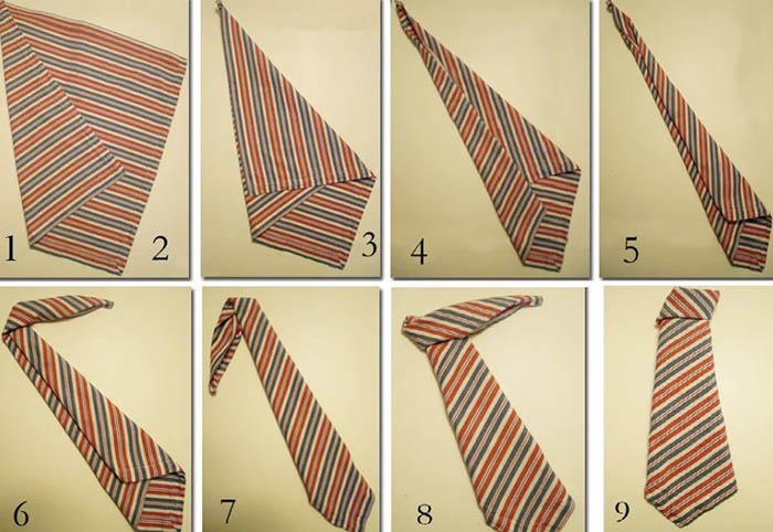 ใช้ส่วนโค้งที่ยื่นออกมาพันรอบฐานส้อมให้ดูเหมือนปมเน็คไท