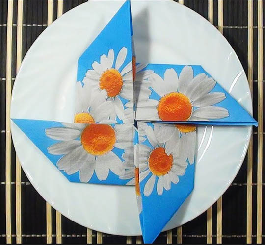 ใครอยากให้โต๊ะดูสดใส ลองพับเป็นรูปดวงอาทิตย์แล้ววางใกล้ช้อนส้อม หรือบนจานของแขกแต่ละคน