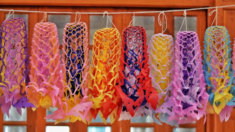 เลือกกระดาษสีสองหน้าหลายเฉดสี เพื่อให้พวงระย้ามีมิติและความสดใส
