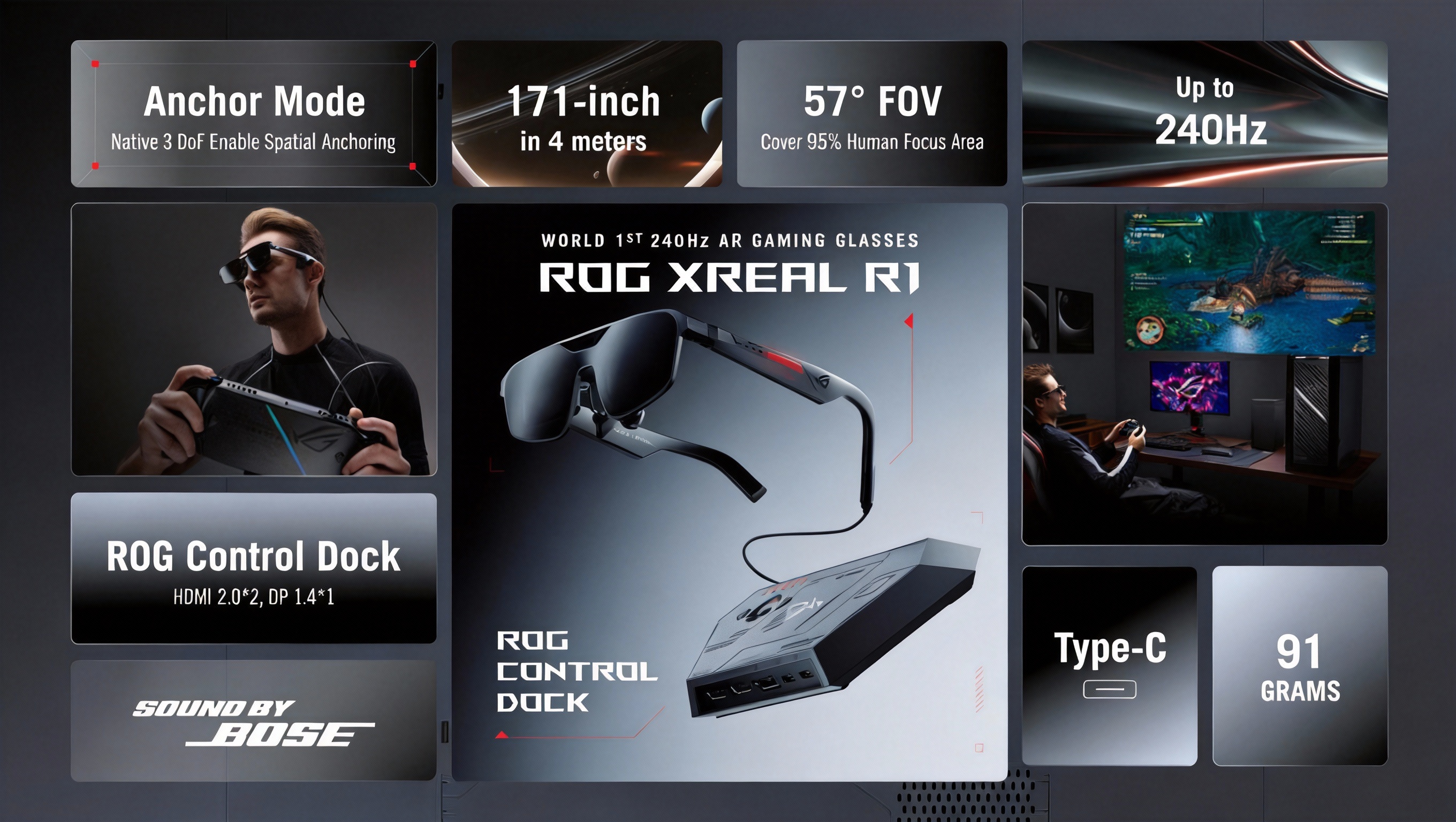 หนึ่งในไฮไลต์ของ ROG XREAL R1 คือการรองรับการใช้งานร่วมกับอีโคซิสเต็มของ ROG อย่างเต็มรูปแบบ ในขณะที่ตัวแว่นเองมีน้ำหนักเบาและสวมใส่ง่าย แต่ด้านการเชื่อมต่อจัดเต็มระดับเดสก์ท็อปผ่าน ROG Control Dock