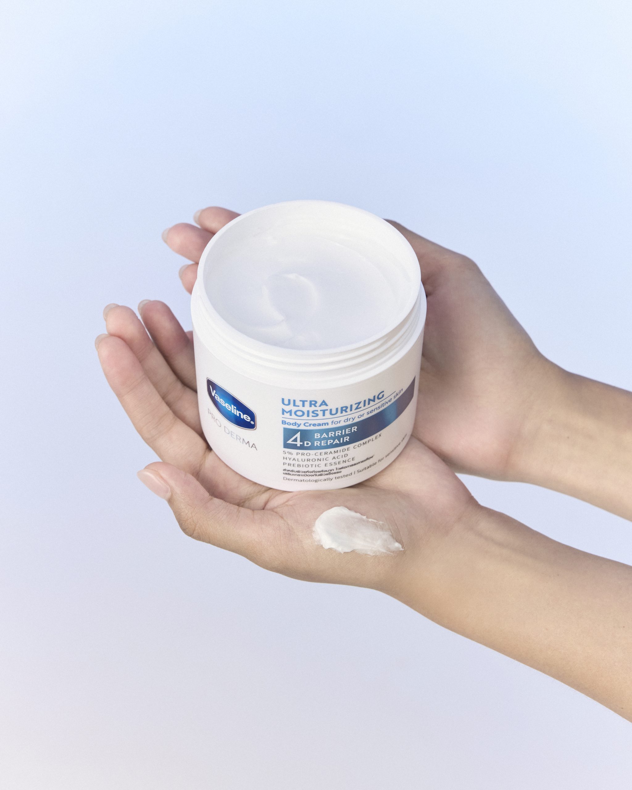 ใครผิวแห้งมาก แห้งลอก หรือรู้สึกผิวขาดน้ำตลอดเวลา ต้องลอง Vaseline Pro Derma Ultra Moisturizing Cream ครีมเนื้อหิมะที่ทั้งบางเบาและบำรุงลึกในเวลาเดียวกัน