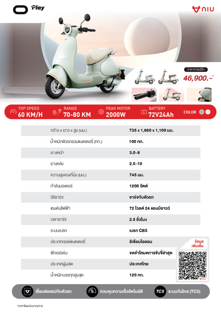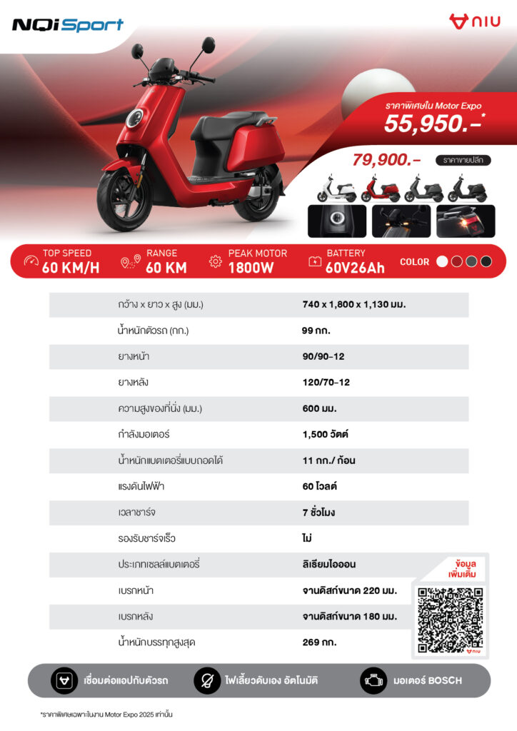 โดยในบูธ NIU รุ่น O-Play และ FX-Pro ถูกวางให้เป็นรุ่นเรือธงสำหรับสายคนเมืองที่ต้องการทั้งสไตล์และฟังก์ชันในคันเดียว เหมาะกับคนที่กำลังอยากเปลี่ยนจากรถน้ำมันเข้าสู่โลกยานยนต์ไฟฟ้าแบบไม่ต้องปรับตัวเยอะ