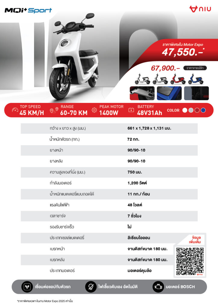 การตั้งโรงงานและศูนย์วิจัยที่บางนา กม.13 การเปิดตัวรุ่น CKD อย่าง O-Play และ FX-Pro การขยายเครือข่ายดีลเลอร์ทั่วประเทศ และการขนทัพ 9 รุ่นไปโชว์ในงานมหกรรมยานยนต์ครั้งที่ 42 ล้วนสะท้อนว่า NIU ไม่ได้มองไทยแค่ในมุมตลาด แต่เห็นเป็น หัวใจของการขับเคลื่อนอีวีสองล้อในภูมิภาค