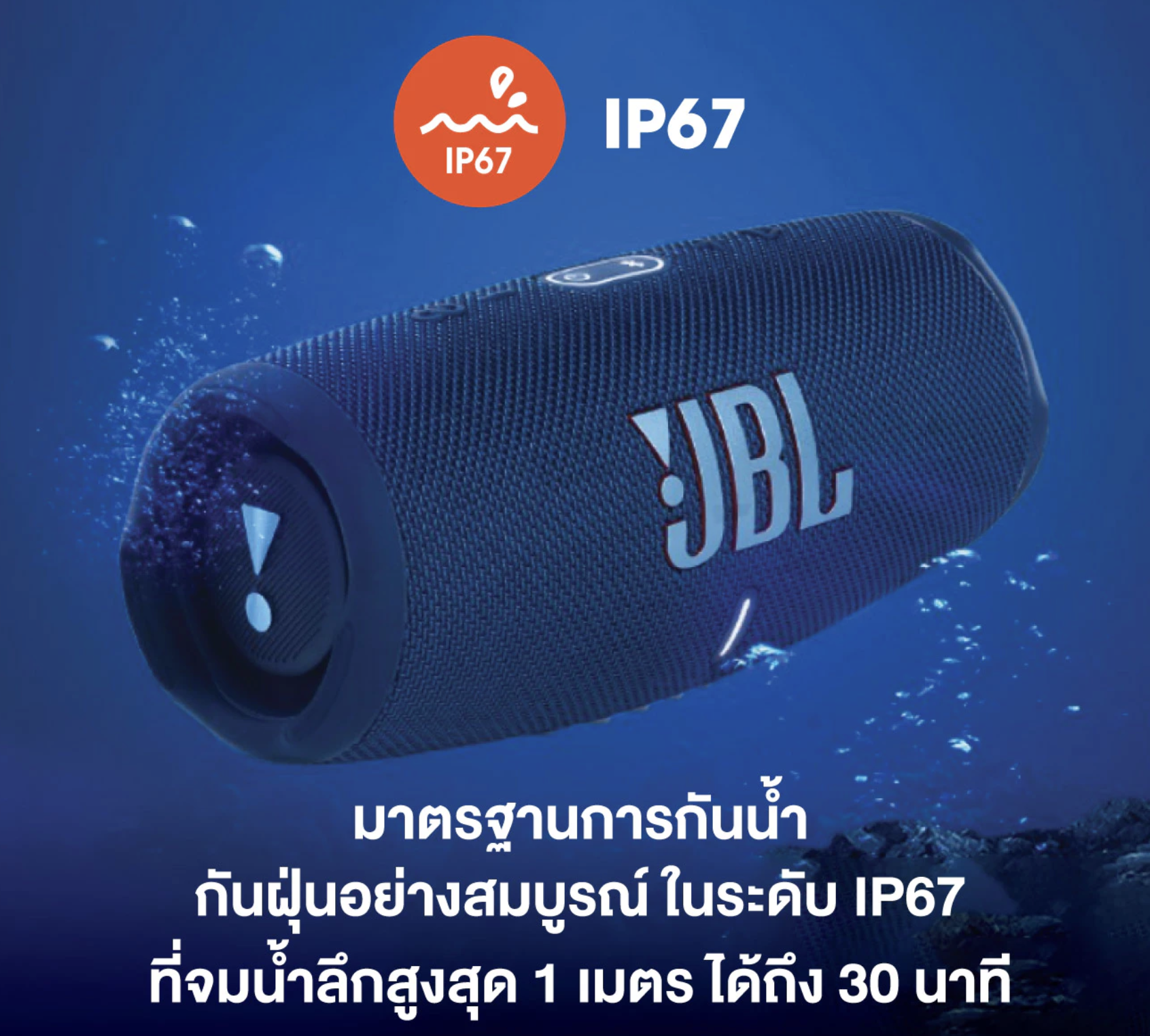 JBL Charge 5 มาพร้อมมาตรฐาน IP67 ซึ่งหมายความว่า: