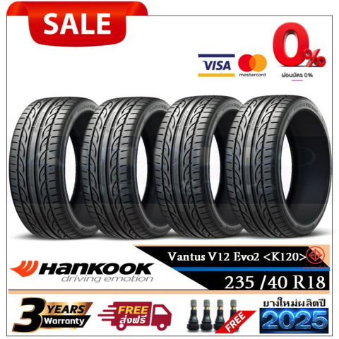 ยกระดับสมรรถนะรถสปอร์ตของคุณด้วย ยาง 235/40R18 Hankook Ventus V12 EVO2 (K120) ยางสปอร์ตยอดนิยมจาก Hankook ที่ออกแบบมาเพื่อผู้ขับขี่ที่รักความเร็วและสไตล์ ให้การยึดเกาะถนนเยี่ยมทั้งถนนแห้งและเปียก ควบคุมแม่นยำ มั่นใจทุกโค้ง พร้อมดีลสุดคุ้มทั้งชุดยาง 2 เส้นและ 4 เส้น ยางใหม่ปี 2025 และปี 2026 จัดส่งฟรีและผ่อน 0% นานสูงสุด 10 เดือน