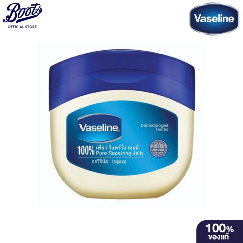 Vaseline Pure Repairing Jelly Original 100ml วาสลีน 100% เพียว รีแพร์ริ่ง เจลลี่ ออริจินัล ผลิตภัณฑ์บำรุงริมฝีปากและผิวกาย เนื้อเจลลี่บริสุทธิ์ช่วยฟื้นบำรุงผิวอย่างล้ำลึก พร้อมล็อกความชุ่มชื่นยาวนาน เหมาะสำหรับทุกสภาพผิวแม้ผิวแห้งเสียหรือผิวแพ้ง่าย ให้ผิวเนียนนุ่ม สุขภาพดี ดูชุ่มฉ่ำอย่างเป็นธรรมชาติ
