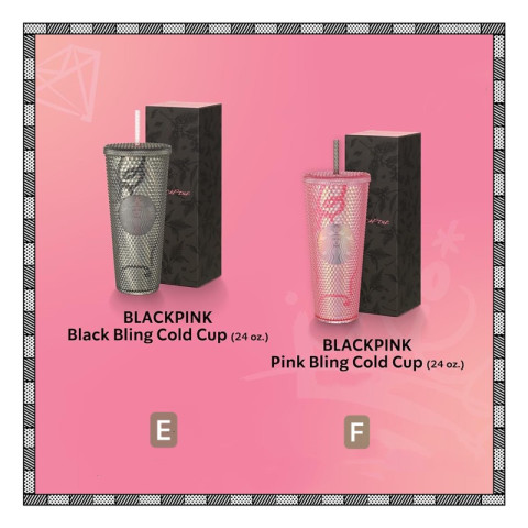 แก้วมักขนาดใหญ่กำลังดี ดีไซน์เรียบหรู มีโลโก้ BLACKPINK ชัดเจน เนื้อแก้วหนา จับถนัดมือ เหมาะสำหรับกาแฟลาเต้หรือเครื่องดื่มแก้วโปรดของคุณC. BLACKPINK Bling Cold Cup (16 oz) – 4,500 บาท