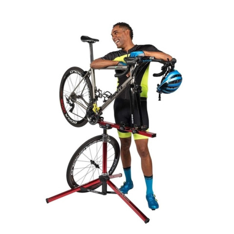 ด้วยระบบยึดแบบจับที่ตะเกียบหน้า (Fork Mount) หรือดรอปเอาท์หลัง ทำให้จักรยานถูกล็อกอย่างมั่นคง ไม่บิดตัวขณะเซอร์วิส พร้อมแท่นหมุนได้รอบ 360 องศา หมุนจักรยานได้ทุกมุมโดยไม่ต้องยกให้เมื่อย ช่วยให้การตั้งเกียร์ ล้างรถ หรือซ่อมบำรุงเป็นเรื่องง่ายขึ้นอย่างเห็นได้ชัด