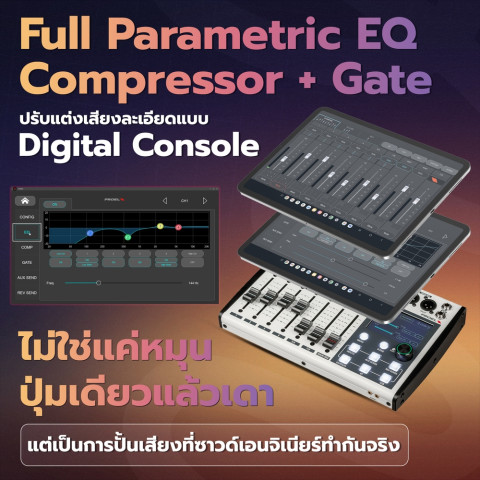 MAIN MIX, AUX 1-2 มาพร้อม EQ 4-Band และ Limiter ช่วยปกป้องระบบเสียงและคุมโทนมิกซ์
