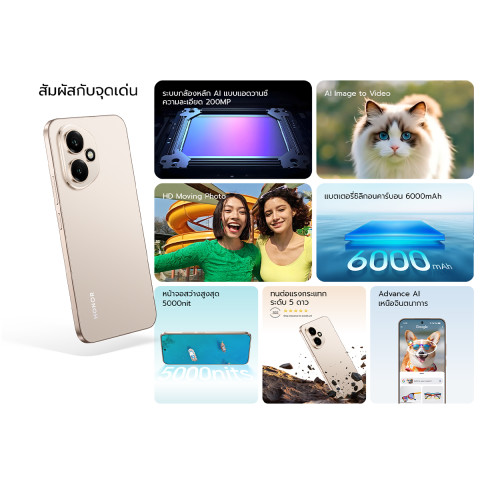 โดดเด่นด้วยกล้องหลัก 200MP พร้อมระบบ AI Camera ที่ช่วยให้ภาพของคุณคมชัด สว่าง และมีมิติในทุกสภาพแสง ไม่ว่าจะถ่ายภาพบุคคล วิวทิวทัศน์ หรือภาพกลางคืน ก็ได้รายละเอียดที่สมจริงระดับมืออาชีพ รองรับการถ่ายภาพและวิดีโอคุณภาพสูง เหมาะสำหรับทั้งสายโซเชียล คอนเทนต์ครีเอเตอร์ และผู้ใช้ทั่วไปที่ต้องการภาพสวยแบบไม่ต้องแต่งเยอะ