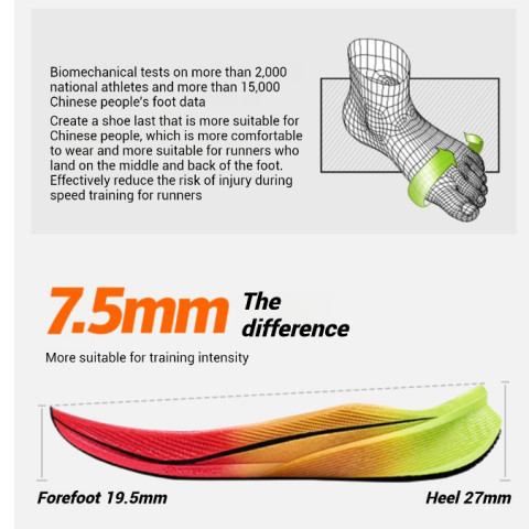 Professional Cushioning & Shock Absorption – พื้นรองเท้าชั้นกลางออกแบบพิเศษเพื่อซับแรงกระแทกหลายระดับ ช่วยลดภาระต่อข้อเท้า เข่า และสะโพก เหมาะสำหรับการวิ่งระยะไกล