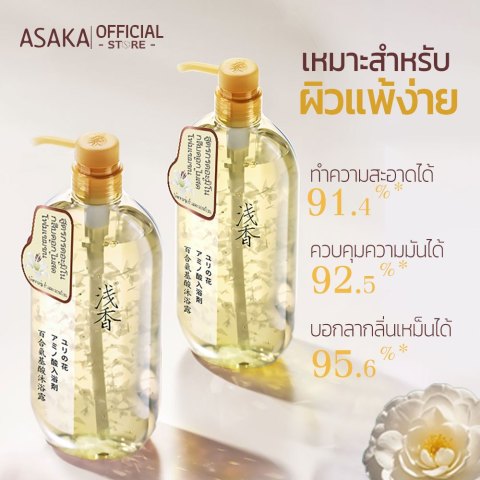 มอบประสบการณ์อาบน้ำที่หอมสะอาดและอ่อนโยนต่อผิวด้วย ASAKA ครีมอาบน้ำ กลิ่น Lily สำหรับผิวแพ้ง่าย Body Wash ครีมอาบน้ำเนื้อสัมผัสนุ่มละมุน ที่ผสานการทำความสะอาดล้ำลึกเข้ากับการบำรุงผิวอย่างอ่อนโยน เหมาะสำหรับทุกสภาพผิวโดยเฉพาะผิวบอบบางแพ้ง่าย ช่วยให้ผิวรู้สึกสะอาดหมดจดแต่ยังคงความชุ่มชื้น ไม่แห้งตึงหลังอาบน้ำ