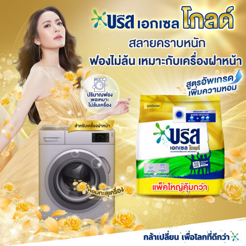 ตวงผลิตภัณฑ์บรีส เอกเซล โกลด์ ปริมาณ 1 ช้อน ละลายในน้ำครึ่งกะละมัง สำหรับการซักผ้า 15–20 ชิ้น จากนั้นขยี้เบา ๆ เน้นบริเวณคราบสกปรก แช่ทิ้งไว้สักครู่ก่อนล้างออกและบิดตากการซักด้วยเครื่องซักผ้าฝาหน้า