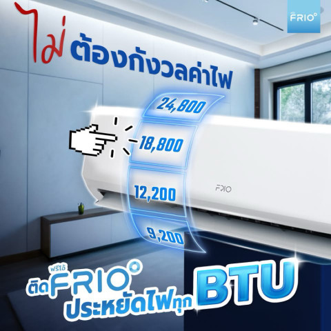 แอร์ FRIO รุ่นนี้มีให้เลือกทั้งหมด 4 ขนาดบีทียู (เต็มบีทียู) เพื่อให้เหมาะกับขนาดห้องของคุณ: