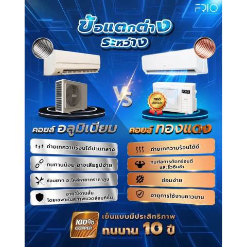 คอยร้อนเป็นทองแดง ทนต่อการกัดกร่อนทุกประเภท ใช้งานได้ยาวนาน