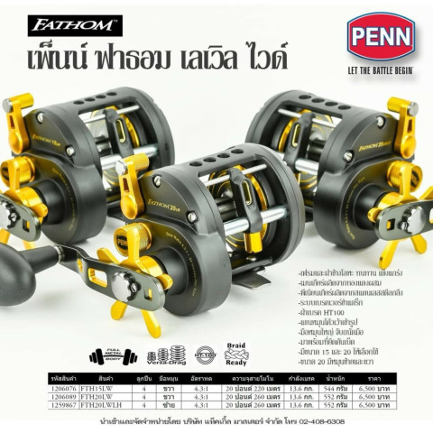 สำหรับรุ่น PENN FATHOM FTH20LW LH (Level Wind ซ้าย) ที่ระบุในสเปคสินค้า เป็นรุ่นหมุนซ้ายที่หายากและตอบโจทย์สาย Left-Handed หรือผู้ที่ถนัดใช้งานมือซ้ายเป็นหลัก มาพร้อมระบบเกลี่ยสายอัตโนมัติ Level Wind ช่วยจัดแนวสายให้สม่ำเสมอ ใช้งานง่าย ลดความเมื่อยล้าในการกรอ และช่วยยืดอายุการใช้งานของสายได้เป็นอย่างดี