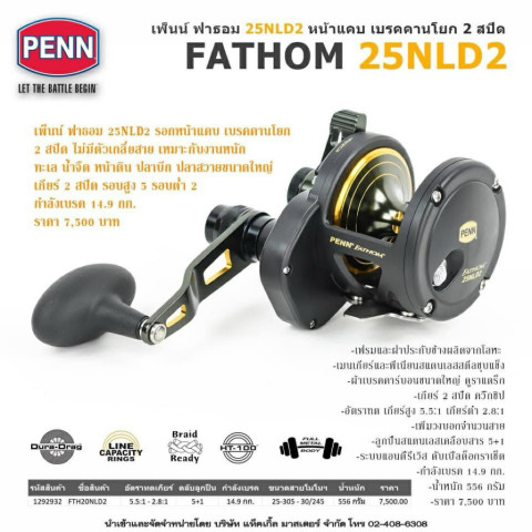 PENN FATHOM รอกทรอลลิ่ง เพ็นน์ ฟาธอม คือรอกทรอลลิ่งหน้าดินสายพันธุ์โหดที่ออกแบบมาเพื่อการใช้งานหนักโดยเฉพาะ เหมาะสำหรับนักตกปลาที่ต้องการรอกที่ไว้ใจได้ในทุกสภาพน้ำ พร้อมรับมือกับปลาขนาดใหญ่ได้อย่างมั่นใจ ทั้งในทะเลใกล้ฝั่งและทะเลลึก ด้วยโครงสร้างแข็งแรง ระบบเบรคทรงพลัง และการออกแบบที่รองรับการใช้งานจริงในสนาม