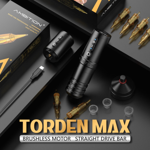 สั่งซื้อ Ambition Torden Max วันนี้ แล้วยกระดับมาตรฐานงานสักของคุณให้ทั้งนิ่ง คุมง่าย แรงต่อเนื่อง พร้อมอุปกรณ์ครบเซ็ต ให้ทุกลายที่คุณสร้างสรรค์ออกมาคมชัด นุ่มนวล และมืออาชีพในทุกสัมผัส
