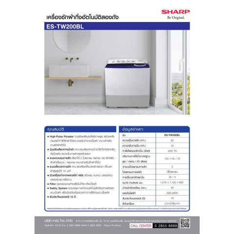 หากคุณกำลังมองหาเครื่องซักผ้าความจุใหญ่ ใช้งานง่าย ซักสะอาด แถมทนทานยาวนาน SHARP ES-TW200BL คือคำตอบที่ช่วยให้การซักผ้าทั้งบ้านกลายเป็นเรื่องเบาสบายในทุกสัปดาห์
