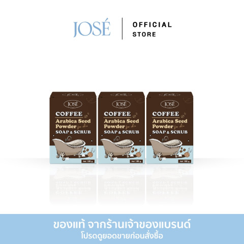 เผยผิวใหม่ให้สวยใสอย่างเป็นธรรมชาติด้วย [บริษัทโดยตรง] JOSE COFFEE SOAP & SCRUB สบู่สครับกาแฟ โจเซ่ เซ็ตสุดคุ้ม 3 ก้อน (ก้อนละ 100 กรัม) ที่ผสานพลังการสครับจากกาแฟอาราบิกาแท้ เข้ากับคุณค่าการบำรุงจากมะขาม น้ำมันมะพร้าวสกัดเย็น น้ำผึ้ง และวิตามิน E ให้ผิวของคุณสะอาด เนียนนุ่ม และดูเปล่งประกายอย่างเป็นธรรมชาติทุกวัน