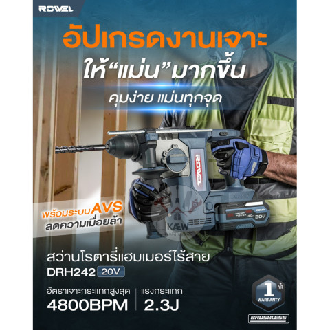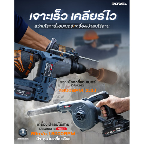 ROWEL DRH242 เหมาะสำหรับงานโครงสร้าง งานติดตั้งรางผนัง งานระบบไฟฟ้า-ประปา งานต่อเติมบ้าน หรืองานช่างทุกประเภทที่ต้องการสว่านโรตารี่ไร้สายที่ทั้งแรง ปลอดภัย และใช้งานได้จริงในทุกสถานการณ์ หากคุณต้องการเครื่องมือที่พร้อมลุยทุกไซต์งาน เครื่องนี้คือคำตอบในชุดเดียว พร้อมใช้งานทันทีตั้งแต่แกะกล่อง