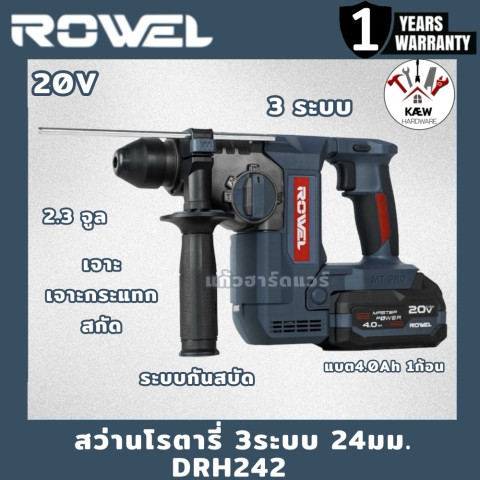 สว่านโรตารี่ไร้สาย ROWEL รุ่น DRH242
