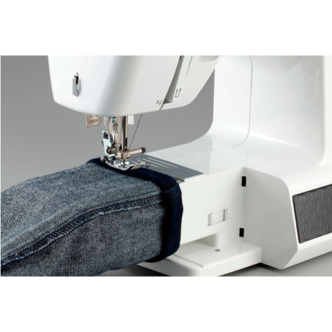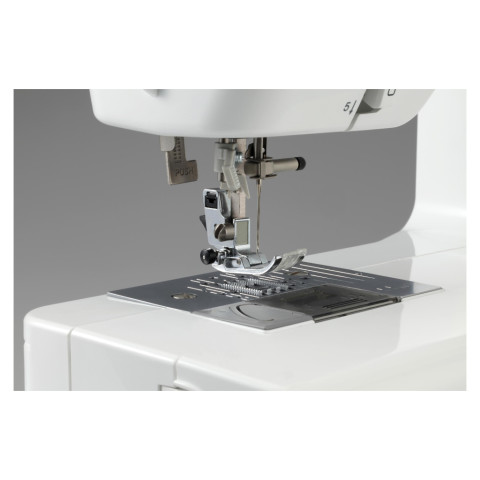 ฟังก์ชันเสริม: สนเข็มอัตโนมัติ, เย็บเข็มคู่, ฟรีอาร์ม, ปุ่มย้ำตะเข็บ, ที่ตัดหางด้าย, ช่องเก็บอุปกรณ์