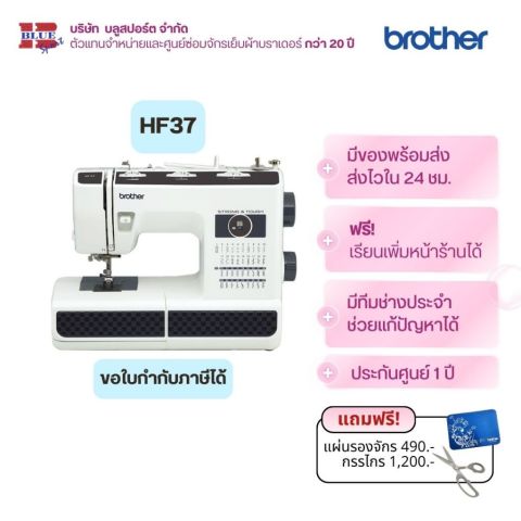 Brother HF37 จักรเย็บผ้า 37 ลาย รุ่นเน้นผ้าหนา “อึด ถึก ทน” สำหรับงานเย็บที่ต้องการความแข็งแรง ใช้งานง่าย เหมาะทั้งจักรประจำบ้าน งานซ่อมแซมเสื้อผ้า ไปจนถึงงานตัดเย็บจริงจัง พร้อม ประกันศูนย์ Brother 1 ปี (ลงทะเบียนรับประกันออนไลน์) จาก ตัวแทนจำหน่ายอย่างเป็นทางการในประเทศไทย มั่นใจของแท้ 100% ในราคา 9,996.00 บาท