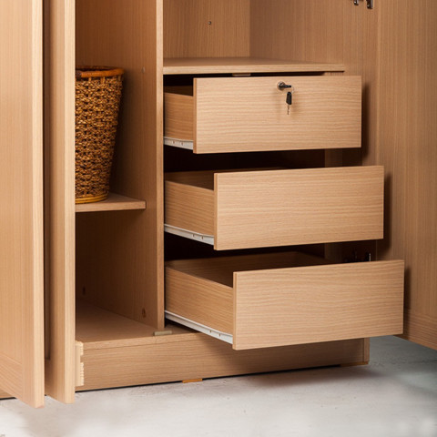 เหมาะสำหรับ: ผู้ที่ต้องการตู้เสื้อผ้าขนาดใหญ่ เก็บครบทั้งเสื้อผ้าและของใช้จุกจิก พร้อมลิ้นชักหลายจุดและระบบล็อคเพื่อความอุ่นใจ