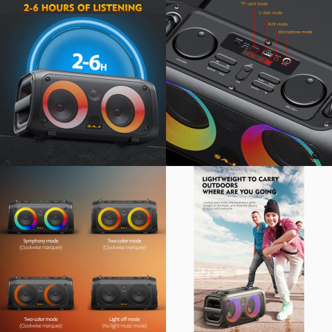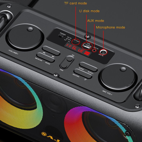 AJ ลำโพงบลูทูธ รุ่น BOM-87W พลังเสียงกระหึ่ม 60 วัตต์ เบสแน่น เสียงดี พร้อม ไฟ LED เพิ่มสีสันให้ทุกปาร์ตี้ และ แถมฟรีไมค์ลอย ร้องคาราโอเกะได้ทันที เหมาะทั้งงานสังสรรค์ที่บ้าน ร้านค้า หรือพกไปใช้นอกสถานที่ ด้วยแบตอึด ใช้งานต่อเนื่องได้ยาวนาน