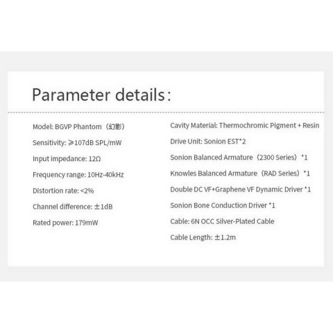 สัมผัสพลังเสียงระดับเรือธงไปกับ BGVP Phantom หูฟังอินเอียร์ Hybrid 8 ไดรเวอร์ ที่ออกแบบมาเพื่อผู้ฟังระดับจริงจังทั้งสายเพลง เกม และงานสตูดิโอ ผสมผสานเทคโนโลยีล้ำสมัย Air Conduction + Bone Conduction เข้าด้วยกัน เพื่อสร้างเวทีเสียงกว้าง สมจริง และละเอียดในทุกย่านความถี่ พร้อมดีไซน์บอดี้เปลี่ยนสีได้ตามอุณหภูมิ เพิ่มทั้งสไตล์และเอกลักษณ์ไม่เหมือนใคร