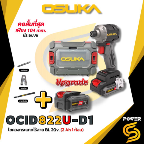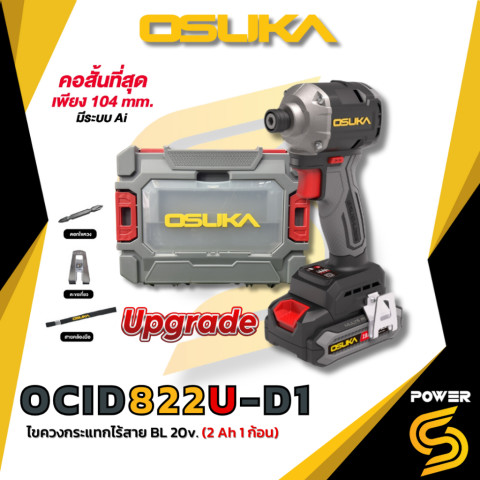 (ถูกสุด) OSUKA ไขควงกระแทกไร้สาย 20V รุ่นใหม่ OCID822U-D1 แรงบิดสูงสุด 240 Nm คอสั้นพิเศษเพียง 104 มม. ตัวเล็กแต่พลังจัด ทำงานคล่องตัวในพื้นที่แคบ ขันได้ทุกซอกมุม เหมาะทั้งงานติดตั้ง งานไม้ งานประกอบเฟอร์นิเจอร์ และงานช่างทั่วไป มั่นใจได้ด้วย ของแท้ รับประกัน 1 ปี ในราคา 5,080.00 บาท