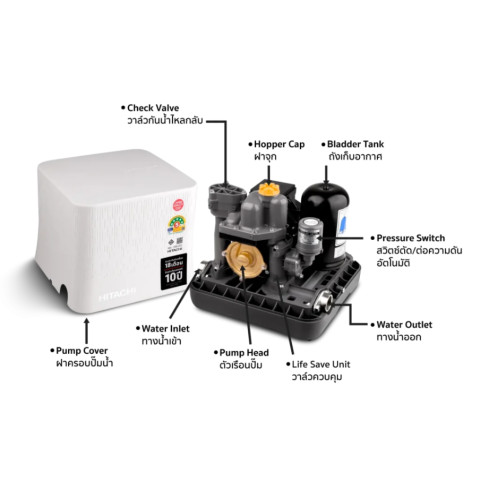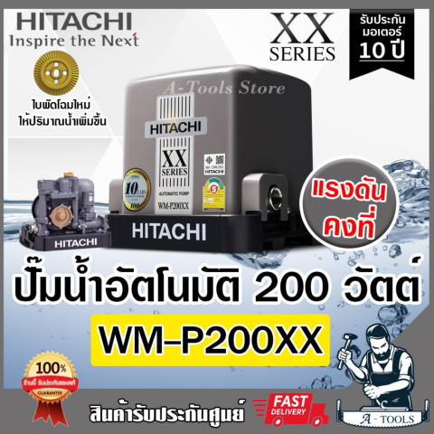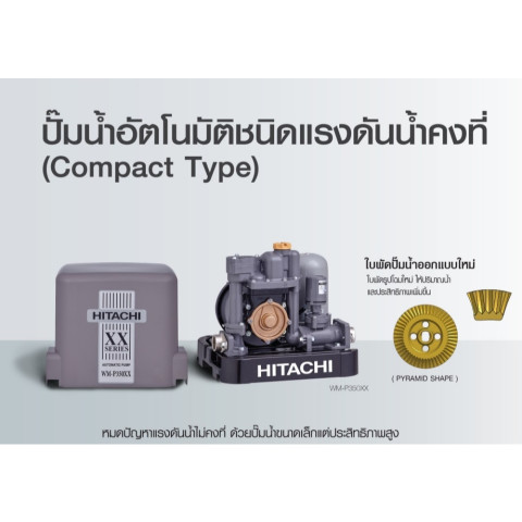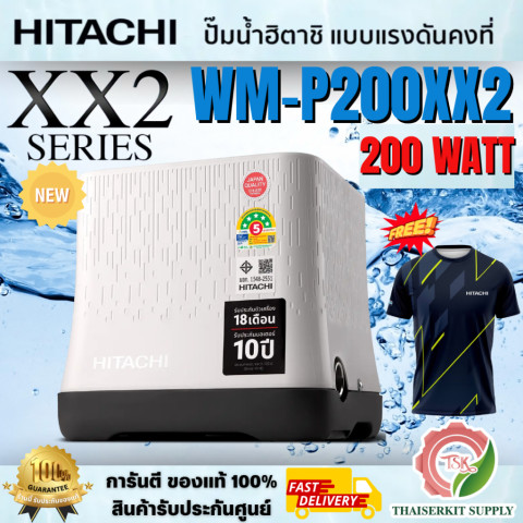 HITACHI WM-P200 XX2 *NEW* ปั๊มน้ำถังสี่เหลี่ยมแรงดันคงที่ 200 วัตต์ รุ่นยอดนิยมโฉมใหม่ ดีไซน์กะทัดรัดแบบแนวตั้ง ประหยัดพื้นที่ ติดตั้งง่าย ให้แรงดันน้ำสม่ำเสมอสำหรับบ้านและอาคารสำนักงาน ใช้งานสะดวกด้วยระบบอัตโนมัติทำงานตามการเปิด-ปิดก๊อกน้ำ พร้อมเทคโนโลยี Sound Block 360° ช่วยลดเสียงรบกวนได้ดียิ่งขึ้น และมาพร้อม ฟรีเสื้อ 1 ตัว