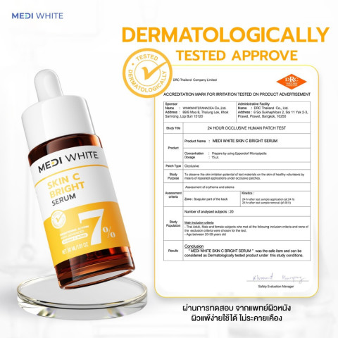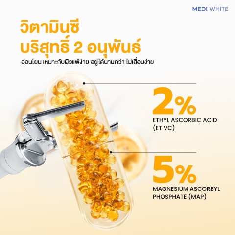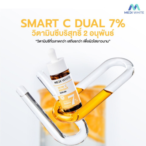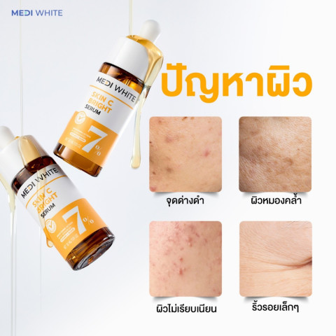 ให้ทุกวันของคุณเป็นวันที่ผิวหน้าแลดูกระจ่างใส สุขภาพดี ด้วย MEDI WHITE Skin C Bright Serum เซรั่มวิตามินซีเข้มข้นที่ถูกออกแบบมาเพื่อผิวคนไทยโดยเฉพาะ ใช้ง่าย เห็นการเปลี่ยนแปลงของผิวที่ดูไบรท์ขึ้นเมื่อใช้เป็นประจำอย่างต่อเนื่อง