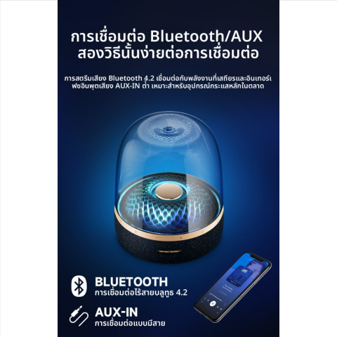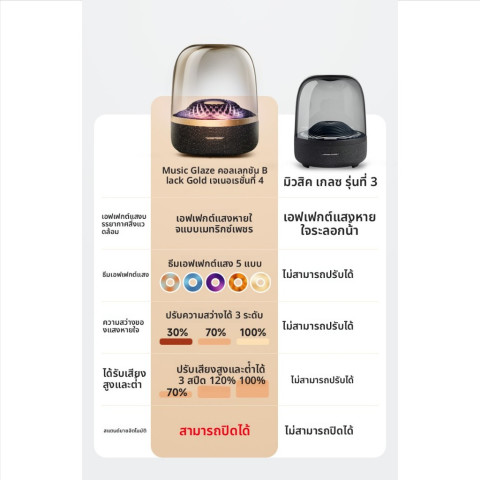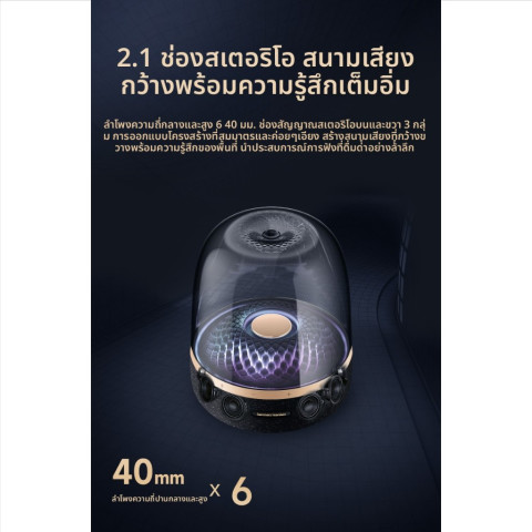 เติมเต็มทุกมุมห้องด้วยเสียงดนตรีและแสงไฟสุดหรูจาก ⚡ ขายดี ⚡ Harman Kardon Aura Studio 4 ลำโพงบลูทูธ ตั้งโต๊ะ สีดำทอง ดีไซน์โดมใสอันเป็นเอกลักษณ์ ผสานเอฟเฟกต์ไฟลายเพชรสุดพรีเมียม ที่จะเต้นระบำไปตามจังหวะเพลง สร้างบรรยากาศเหนือระดับทั้งในห้องนั่งเล่น ห้องนอน หรือโต๊ะทำงานของคุณ