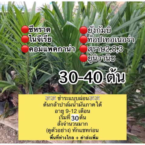 เปลี่ยนพื้นที่ของคุณให้กลายเป็นสวนปาล์มน้ำมันคุณภาพ ด้วย ต้นปาล์มน้ำมันอายุ 9–12 เดือน คละสายพันธุ์ 30 ต้น พร้อมตัวเลือกการซื้อแบบผ่อนชำระ 💸 ปลูกง่าย ดูแลง่าย เหมาะทั้งสำหรับเกษตรกรมือใหม่และผู้ที่ต้องการขยายสวนอย่างจริงจัง มาพร้อมใบรับรองสายพันธุ์ มั่นใจได้ในมาตรฐานและคุณภาพทุกต้น 🇹🇭