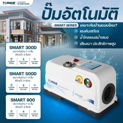หากคุณกำลังมองหาปั๊มน้ำอัตโนมัติที่ให้แรงดันน้ำคงที่ เงียบ ทนทาน และคุ้มค่า TORQUE SMART900 คือคำตอบที่ช่วยให้ทุกจุดใช้น้ำในบ้านของคุณไหลแรงได้ดังใจ พร้อมการรับประกันมอเตอร์ยาวนาน หมดกังวลเรื่องปัญหาปั๊มน้ำไปได้เลย