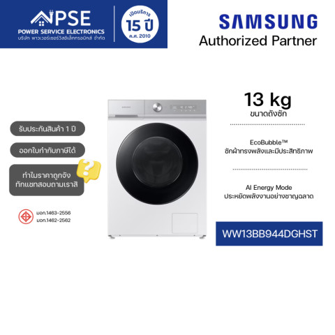 รุ่น: WW13BB944DGHST | ประเภท: เครื่องซักผ้าฝาหน้า | ความจุ: 13 กก. | สี: White