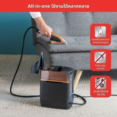 นอกจากช่วยให้ผ้าเรียบเนียน ยังผสานฟังก์ชันเพื่อสุขอนามัยที่ดีกว่า ด้วยการทดสอบแล้วว่าสามารถช่วยยับยั้งเชื้อแบคทีเรียและขจัดกลิ่นอับได้สูงสุดถึง 99.9% ให้เสื้อผ้าสดชื่น สะอาด มั่นใจทุกลุค ทั้งยังสามารถถอดตัวเครื่องยกออกจากฐานไปใช้กับผ้าม่าน โซฟา หรือปลอกหมอนได้อย่างสะดวก ช่วยดูแลทั้งเสื้อผ้าและของใช้ในบ้านในเครื่องเดียว