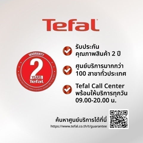 การบริการภายใต้เงื่อนไขการรับประกัน อาจเป็นการซ่อมหรือเปลี่ยนชิ้นส่วน ตามการพิจารณาของ Tefal