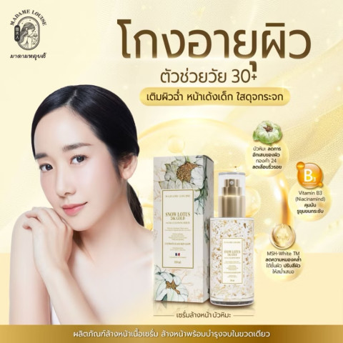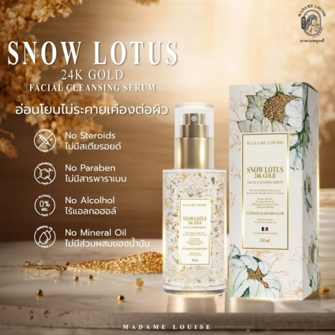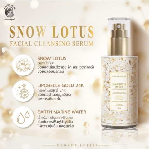 MADAME LOUISE SNOW LOTUS 24K GOLD FACIAL CLEANSING SERUM เซรั่มล้างหน้าระดับพรีเมียมที่ออกแบบมาเพื่อปลดล็อกผิวกระจกเงา เปล่งประกายออร่า ดูอ่อนเยาว์เหนือกาลเวลา ยกระดับการล้างหน้าธรรมดาให้กลายเป็นขั้นตอนบำรุงผิวสุดหรูในหนึ่งเดียว